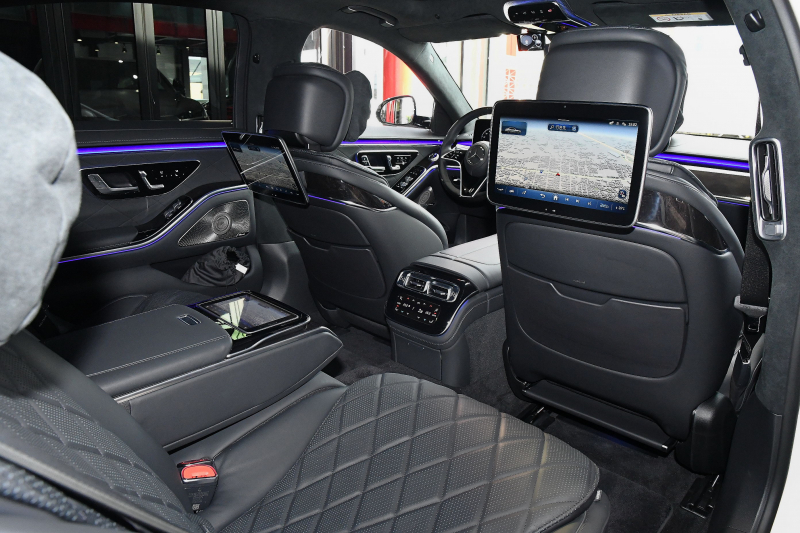 [ダッシュボード(ナッパレザー)、センターコンソール(前席)(ナッパレザー)、ドアトリム(前席 / 後席) (ナッパレザー)、センターアームレスト(後席)(ナッパレザー)、乗降用ハンドル(ナッパレザー)、ドア内張り(ナッパレザー)、ルーフライナー(レザーDINAMICA)]