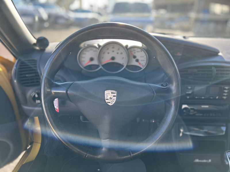 距離の少ない希少なイエロー、ボクスターS入庫しました。左ハンドル、6速マニュアルです。