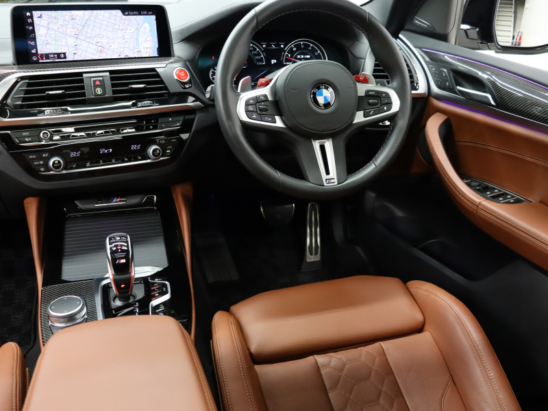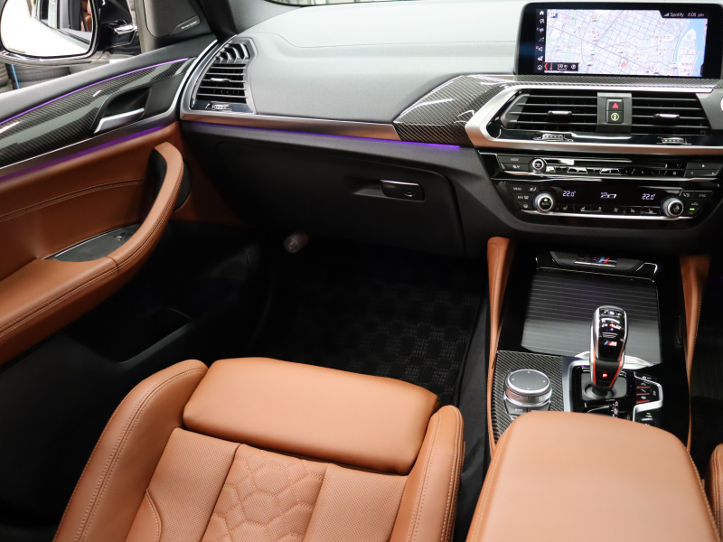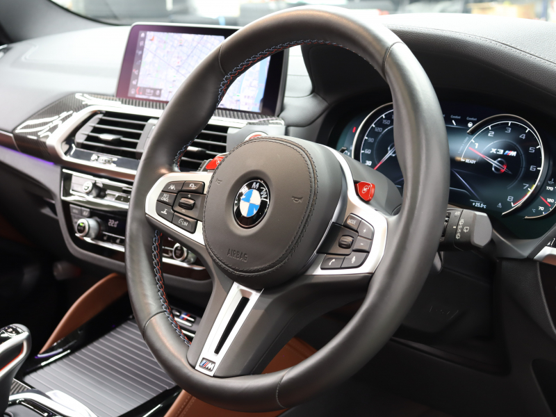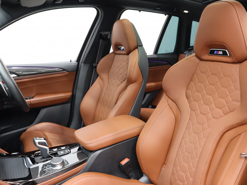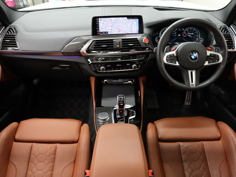 BMW X3 M コンペティション 1オーナー パーキング&ドライビングアシスト+ ACC 茶革 ベンチレーター パノラマSR Idriveナビ TV 360カメラ harman/kardon HUD ワイヤレスチャージングMスポーツエキゾースト Mサスペンション 専用Mエアロ&21インチAW(スタイリング765M) 2年保証