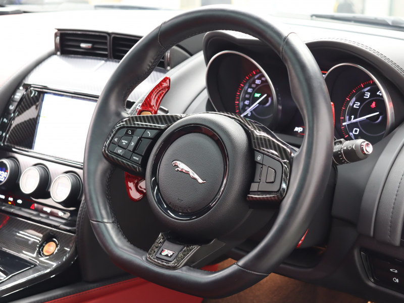 ジャガー Fタイプ Rクーペ 550ps スマートKEY 赤革 パフォーマンスシート ガラスR バックカメラ MERIDIANサウンド 自動Rゲート ステアリングヒーター 電動リアウィング パフォーマンスEX 20AW 2年保証