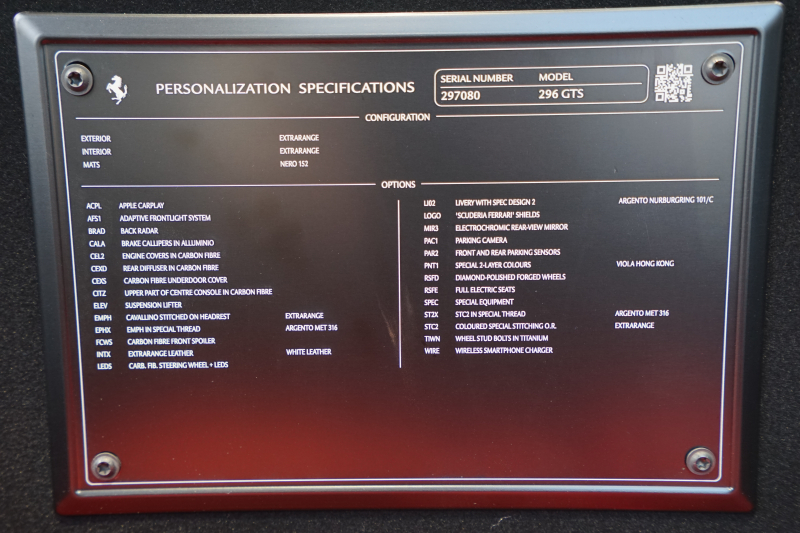 フェラーリ 296GTS ディーラー車 特別カラーヴィオラホンコン(センターライン入り) オプション総額1248万円 カーボン多数 Fリフター