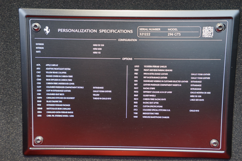 フェラーリ 296GTS アセットフィオラノ レーシングストライプ オプション合計1300万円 カーボンフロントリップ/サイドシル/リアディフューザー 1オーナー
