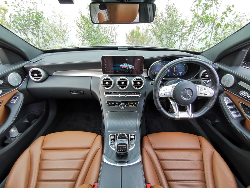 AMG Cクラス C43 4マチック 1オーナー パノラマルーフ RSP 茶革 Burmester HUD パワーリッド エアバランスPk AMG19インチAW ACC レーンキープ ブラインドスポット LEDヘッドライト AMGライドコントロール キーレスゴー COMANDシステム
