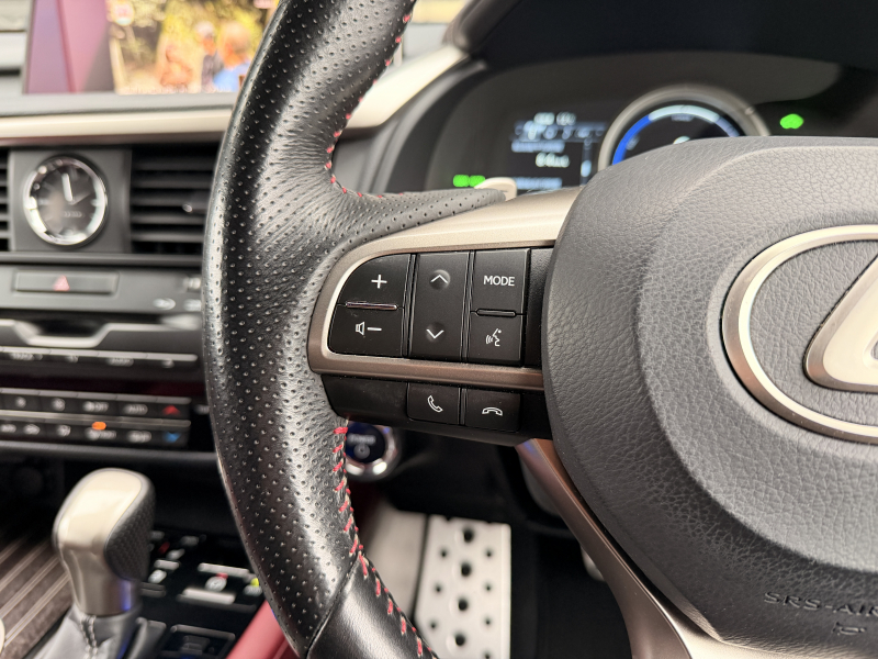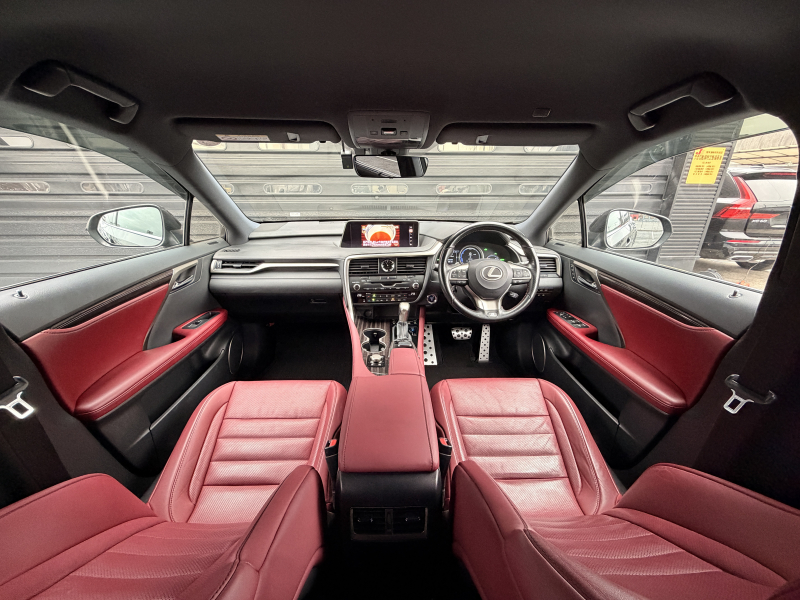 レクサス RXハイブリッド 450h Fスポーツ 1オーナー 禁煙車 赤革 HUD ヒーター&クーラー付電動フロントシート 電動セカンドシート ステアリングヒーター 360度カメラ パワーテールゲート Bluetooth接続 デジタルTV 衝突軽減ブレーキ ACC CD・DVD・Blu-ray