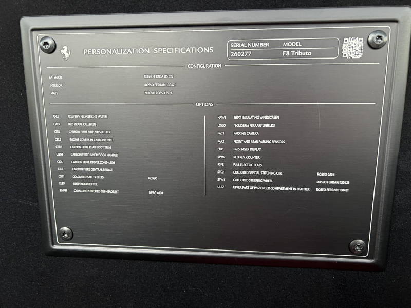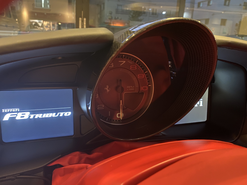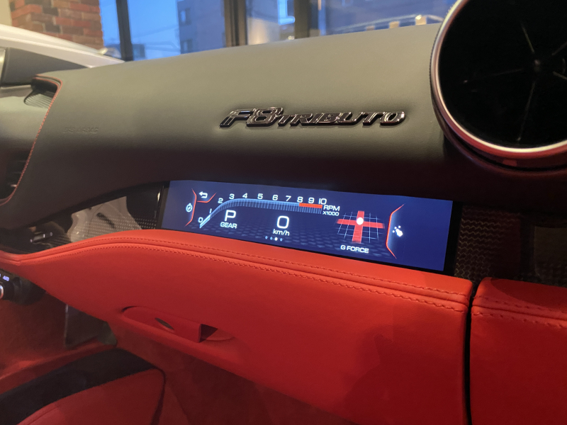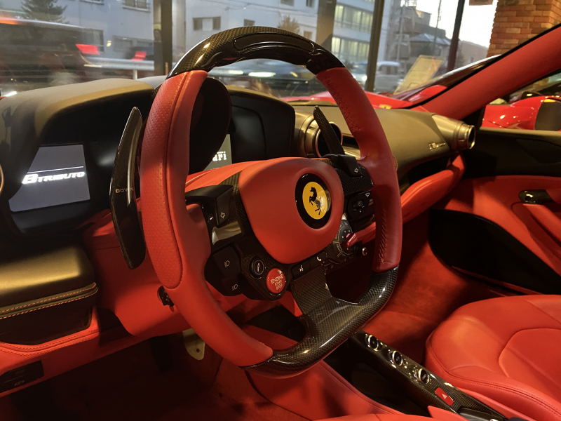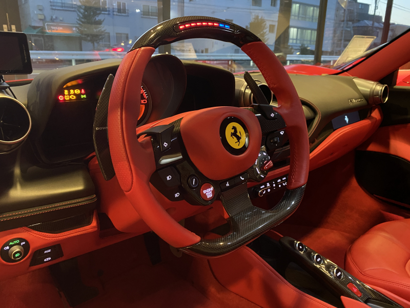 フェラーリ F8 トリブート ロッソコルサ ロッソフェラーリインテリア カーボンドライバーゾーン+LED カーボンセンターブリッジ カーボンインナードアハンドル カーボンリアブーツトリム フロントリフト カーボンサイドエアスプリッター カーボンエンジンルーム パッセンジャーディスプレイ アダプティブヘッドライトシステム